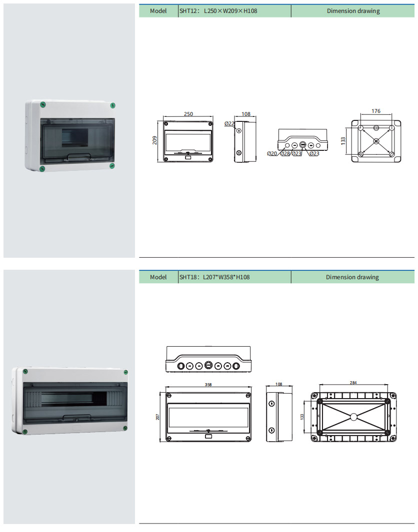 ABS distribution box products are widely used in indoor and outdoor environments, such as metallurgy, steel, nuclear power plants, power plants, chemical industry, Tunnel engineering, subway, charging piles and photovoltaics and other fields. This product provides module options from 2 to 24 channels, with flexible configurations from 1 to 3 rows, and is suitable for a rated voltage of 400V and a rated insulation voltage of 690V. Its ABS shell and PC door material ensure excellent temperature resistance (-25°C to +80°C) and halogen-free and silicone-free environmental protection. In addition, the product complies with international standards such as EN 60670-1 and DIN EN 60670-24, providing a reliable and safe solution for power distribution.
