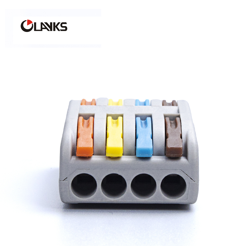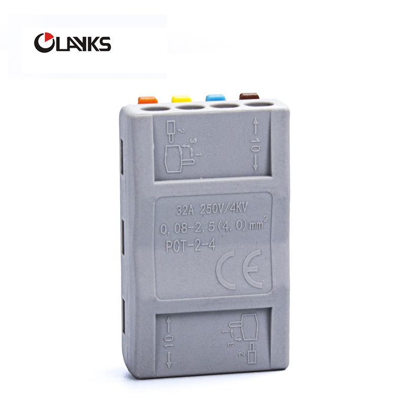 (1) соединитель PCT-2-4C с четырьмя проводами сочетает в себе многоцветную маркировку и огнестойкий корпус, повышая как безопасность, так и организацию проводки. (2) Предназначенный для быстрой установки, он подходит для проводов различных сечений до 32А/250В, обеспечивая универсальность применения. (3) Этот соединитель идеален для структурированных кабельных систем, где необходимо четкое разделение множества цепей.